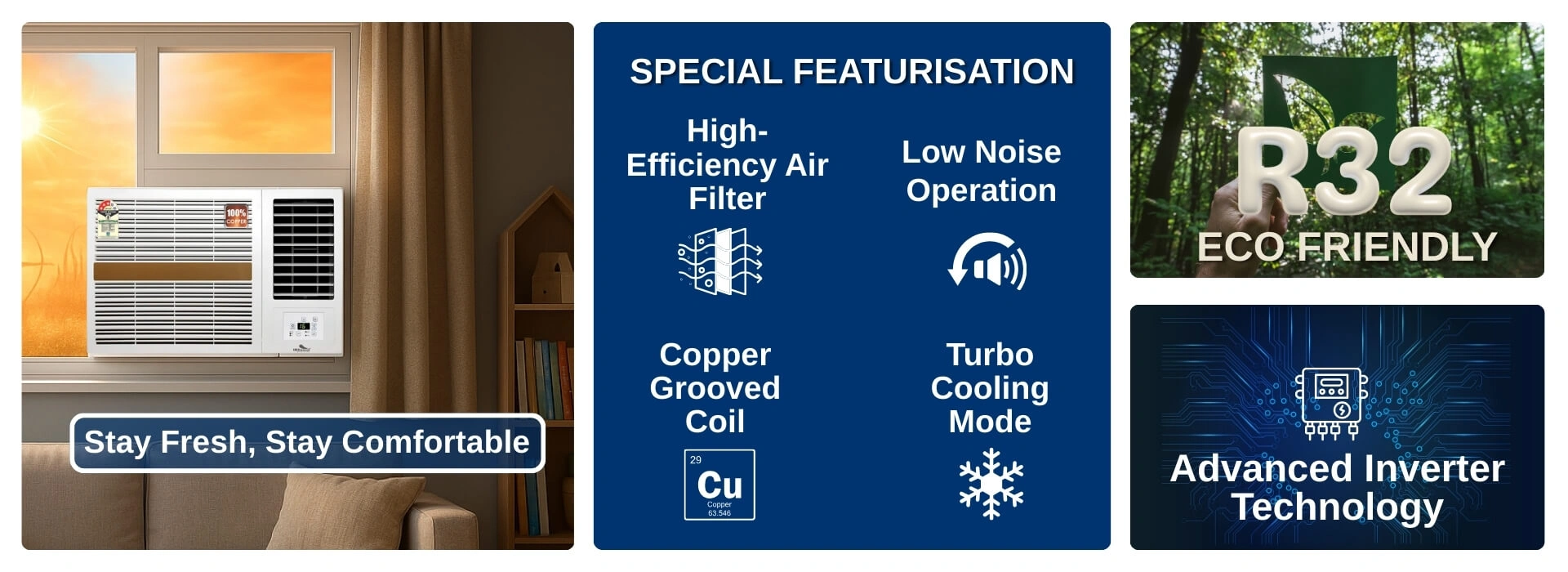 Bring home this dependable 1.5 Ton Window AC today and stay cool, comfortable, and eco-conscious.