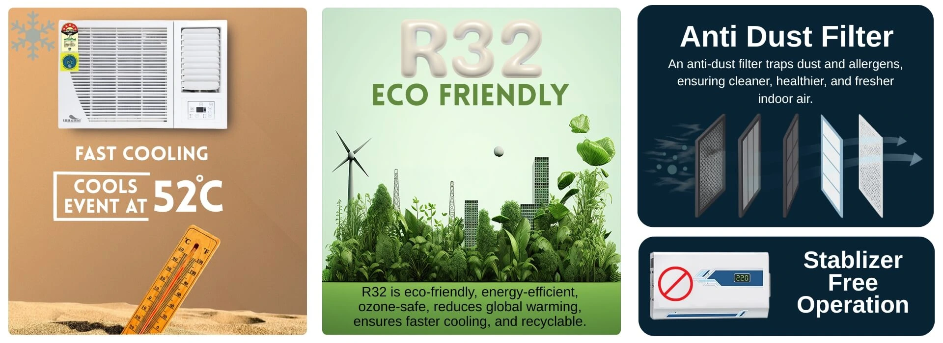 - Type: Non Inverter Window Air Conditioner